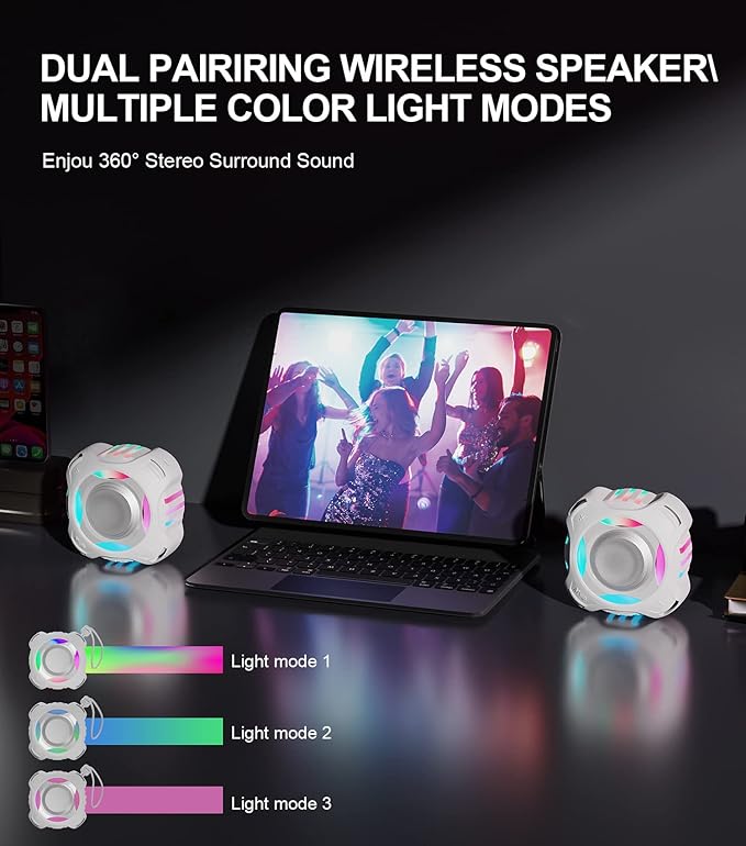 - [Portable, long battery life & TWS-360° stereo] Small waterproof speaker with TWS mode, pair 2 speakers together via Bluetooth to create an immersive 360° stereo experience, perfectly synchronized to play the same music with double the volume. The portable speaker comes with a flexible lanyard to save space and make it easy to hang the device anywhere. 2000 mAh high-capacity rechargeable battery provides you with about 24 hours of uninterrupted music journey at medium volume.