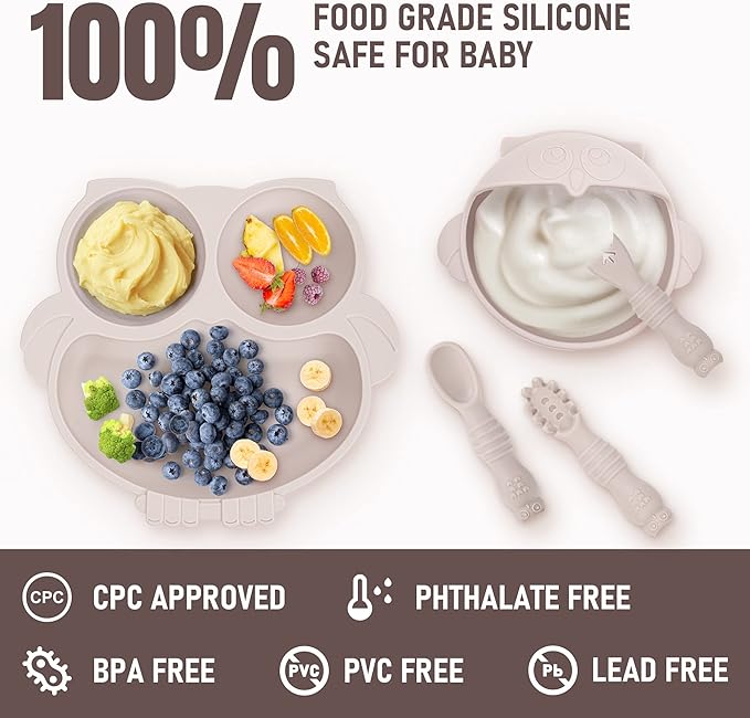 - Food Grade Safety Silicone Weaning Set: The baby weaning set is made of food grade silicone material, which is free of BPA, PVC, phthalates, and other harmful chemicals. The safe and healthy silicone feeding set not only provides convenience for the baby to train for self feeding, but also the soft and safe silicone material will not affect the baby's growing teeth. It is the most ideal choice for baby weaning.