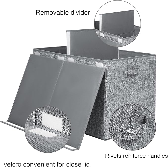 - DETACHABLE DIVIDER - The toy chest have a removable divider board. You can attach it by velcro, which is great for organizing different items separately, you can also detach the divider for store bigger things, like quilt, blankets, large toys, etc