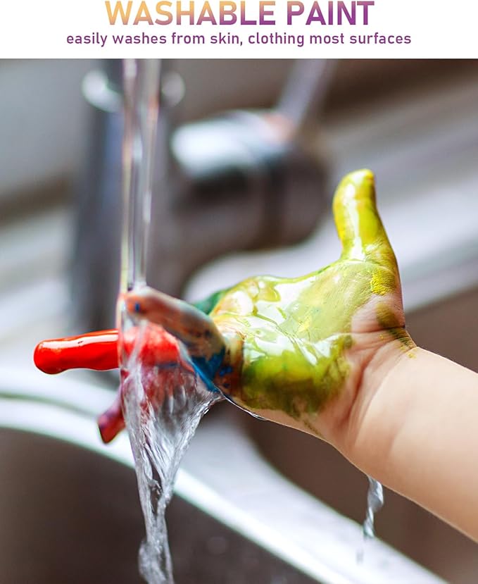 - SAFE & NON TOXIC for All Ages - Made with a skin-safe formula that meets ASTM D-4236 standards. Safe for toddlers and young kids to use at home, or school—ideal for finger painting and creative painting