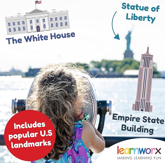 - Perfect for 3 - 5 Year Olds – This set builds upon typical first words and includes more challenging words such as dolphin, guitar, microwave, and watch. Set includes a variety of famous US monuments, animals, foods, fruit and veg, vehicles, musical instruments, and things you see when out and about.
