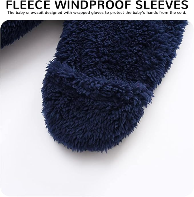 • ❤♥Design: Baby fleece snowsuit jacket warm one-piece jacket, full-cover zipper design to protect the baby from harm, one pull to the end, it is convenient for the baby to change diapers, the flip-up gloves can keep the baby warm and energetic at the same time, the bear ear one-piece cap makes the baby Avoid cold winds outdoors while increasing your baby's charm.