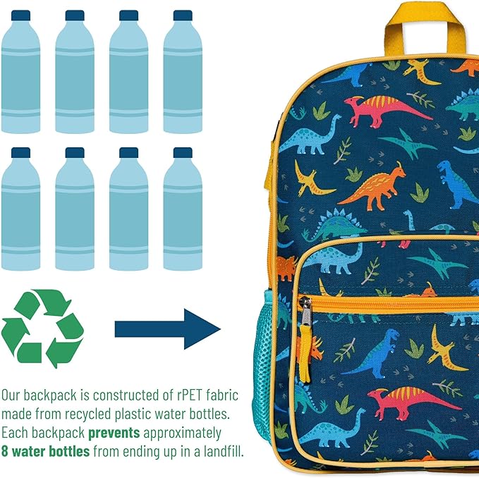 Wildkin ECO rPET Kids Backpack – Recycled, Padded, Adjustable for School & Travel – Jurassic Dinosaurs