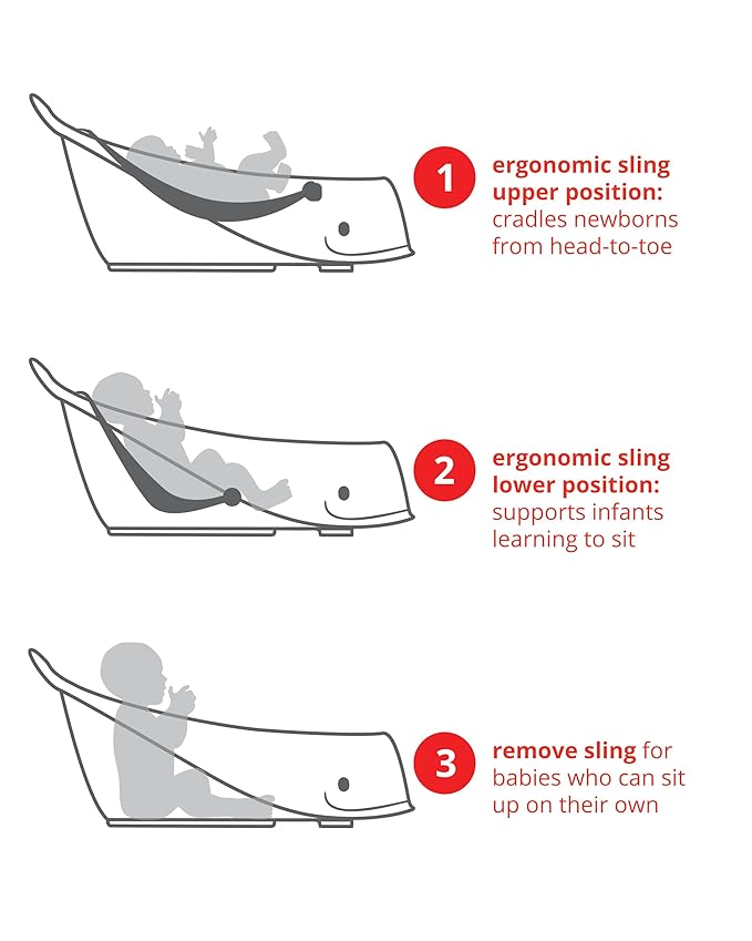 - Easy Transition for Sitters: Once your baby is ready to sit upright, the Smart Sling can be removed entirely, providing a spacious and comfortable tub. With no uncomfortable plastic bumps, it offers a smooth and roomy bathing experience for older babies