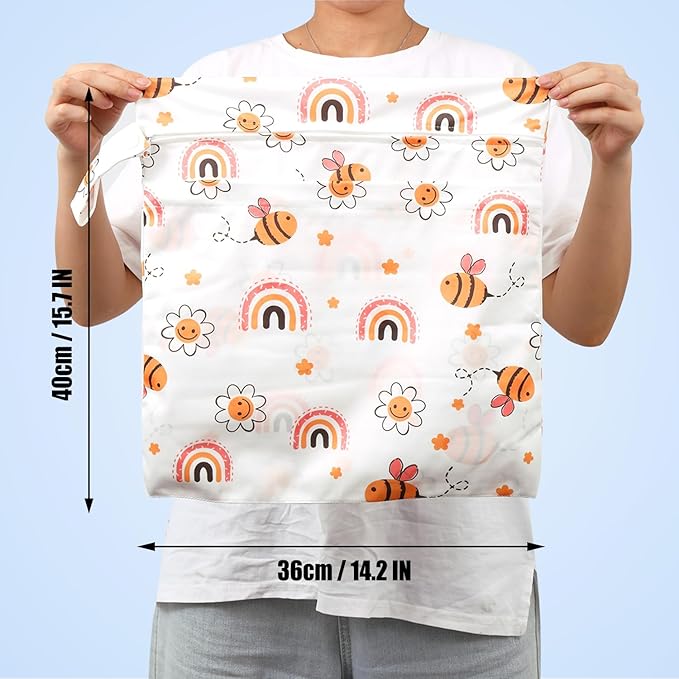 • WATER RESISTANT: The cloth diaper wet dry bags are lined with TPU waterproof coating that keeps odors and moisture. It can't hold clothes dripping but is perfect for damp clothes. Please wring out wet items before placing them in the bag, excess water may cause leaks through the seams.