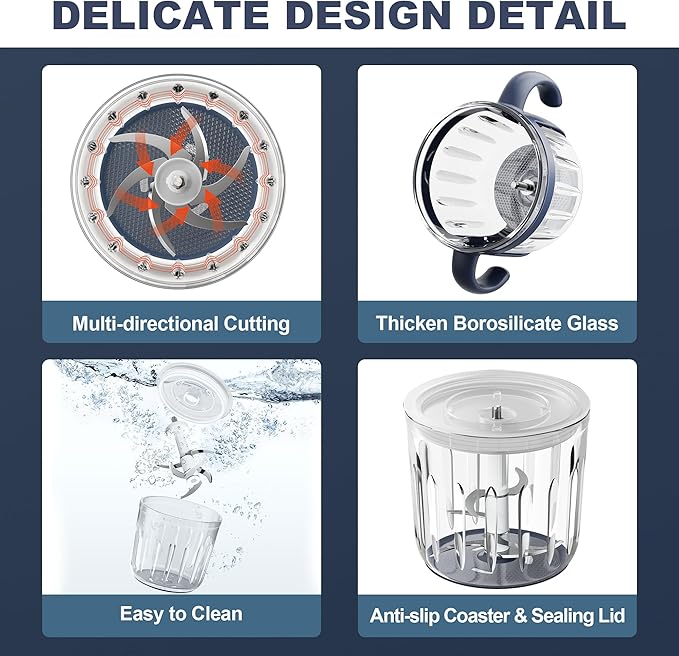 - 【Easy to Use and Clean】With a simple one-button operation, you can easily use the baby food blender to blend, puree, or chop your baby food. The mixing bowl, blades and lid are completely separated from the body and can be easily disassembled and cleaned. This baby food maker also comes with a recipe book to help new parents get better at using it.