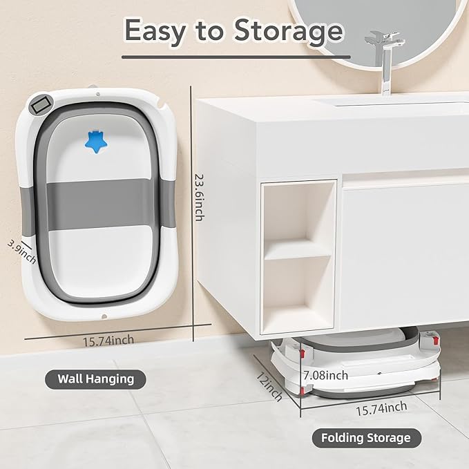 - 【Visible Temperature】Baby Bathtub is equipped with a temperature sensor, convenient for parents to adjust the water temperature in time. Ensure the safety and comfort of the baby when bathing.