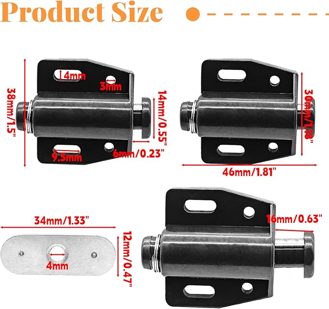- Durable Material: The shell of the magnetic touch latch is made of ABS material, strong and stable, wear-resistant and durable. High quality magnets and iron sheets provide strong suction and prevent them from falling off easily.