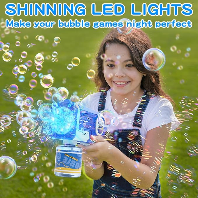 - ❤Cool LED Lights:The bubble toys have shinning LED lights which can glow in dark, just pull the trigger instantly and the bubble gun will fire a burst of colorful bubbles, which is very dreamlike and amazing. Create a wonderful atmosphere with ease. More joy for you and your family.