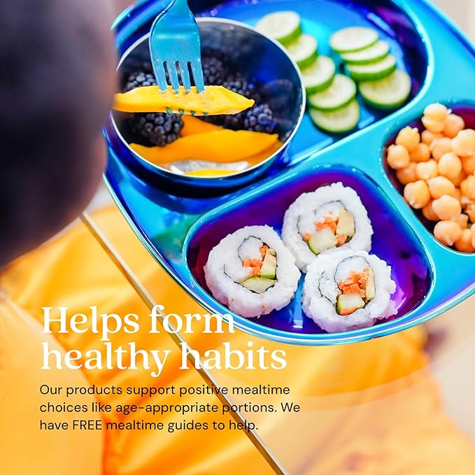 - ๐๐๐ซ๐๐๐๐ญ ๐๐จ๐ซ ๐๐๐ฅ๐๐ง๐๐๐ ๐๐๐๐ฅ๐ฌ: These kids compartment plates offer three helpful sections (2oz, 4oz and 12oz) to support healthy eating habits and age-appropriate servings. The mirrored finish of our stainless steel plates for toddlers encourages exploration of new foods and promotes independent eating. Perfect for toddler plate set routines that evolve with your childโs development
