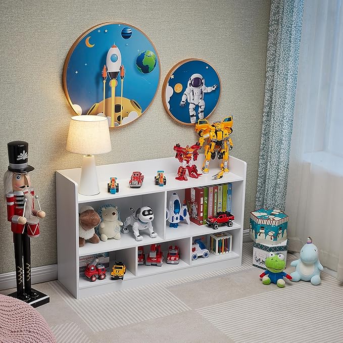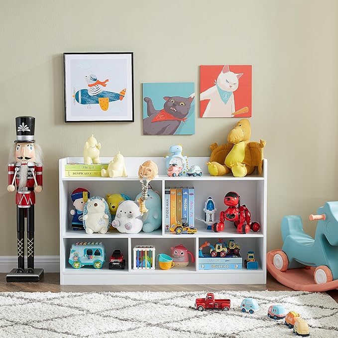 - 【Keep Kids' Room Neat and Tidy with Toy Storage Organizer】- With five spacious compartments, it provides ample storage and display space for books, toys, art supplies, and more. Say goodbye to messy rooms and cluttered floors! Our organizer lets you keep everything in its place. You can even create fun hidden storage spaces with woven boxes, reducing visual clutter and adding a playful touch to your child's room.