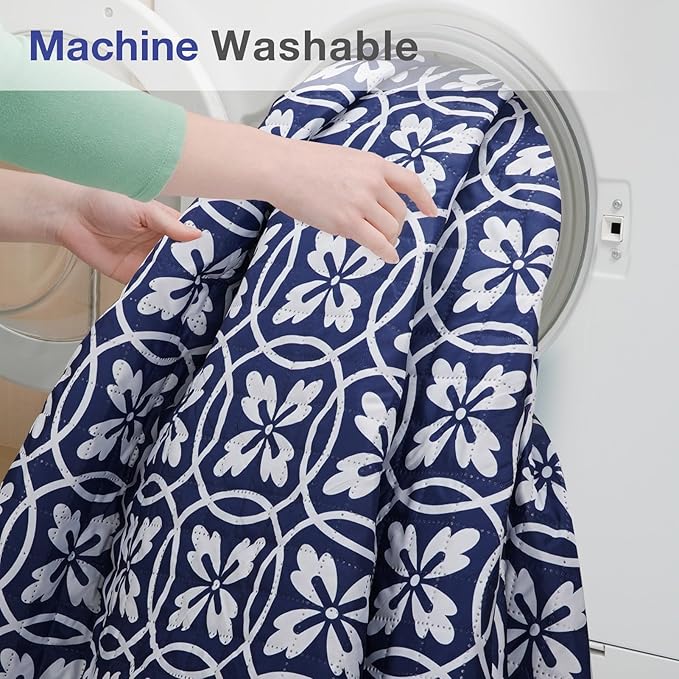 - HIGH QUALITY FABRIC: The top fabric is made of durable polyester, and printed with classic navy blue, the color printed is safe and fastened, not easy to fade as time goes. The soft cotton padded in the middle, making the picnic blanket soft and comfortable to sit and lie down.