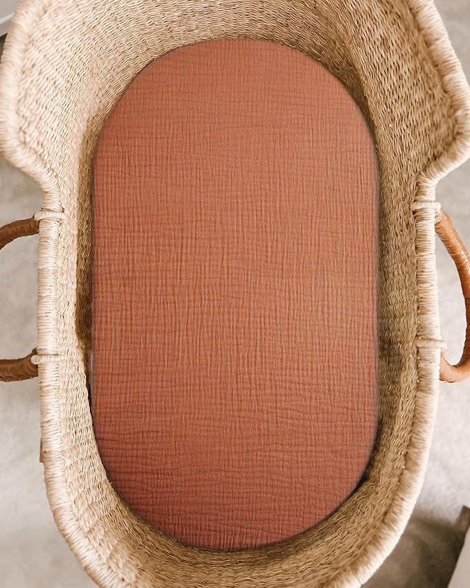 Bassinet Sheet for Baby Boy and Girl, Fitted Sheets for Rectangle, Oval, Hourglass Bassinet Mattress, Muslin Moses Basket Sheets with Neutral Style (Brick)