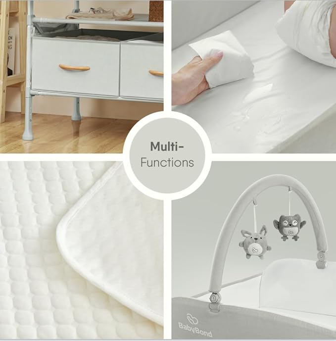 - HEIGHT ADJUSTMENT & MOBILE--The BabyBond baby changing table has upgraded 3 heights adjustment ranging from 33 inches to 35 inches, accommodating adults ranging from 4.8-6 feet tall, eliminating the need to bend or kneel during diaper changes. In addition, the portable changing table has four removable universal wheels with safety locks, making it easily movable from one room to another