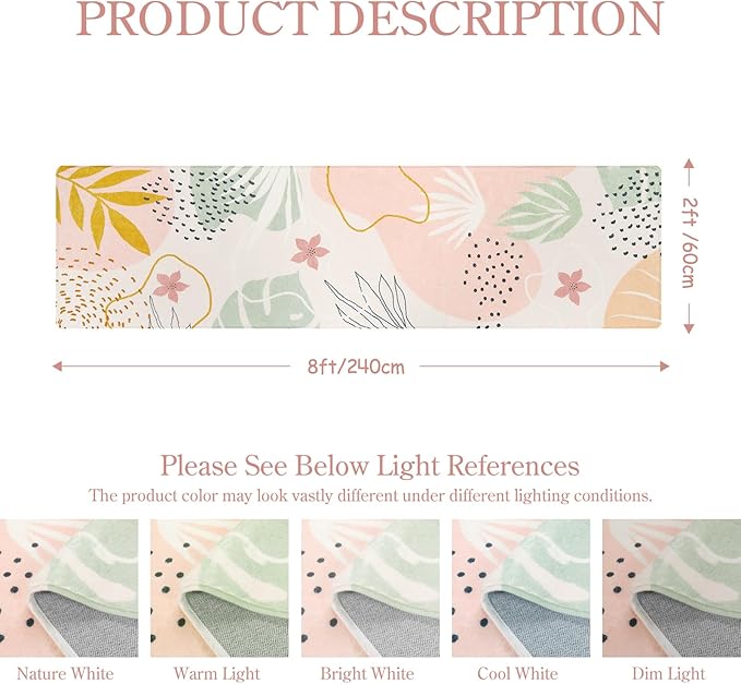 Lahome Washable Rug 2x8 - Hallway Kitchen Bathroom Carpet Runner, Lightweight Pink Botanical Print Laundry Non Slip Throw Rug, Bedroom Entryway 8ft