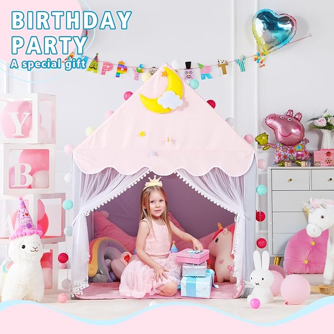 - Easy Assembly & Clean: This kids indoor tent is simple to assemble and requires no tools. Made of polyester material, the princess tent for girls is durable, easy to clean. Come today and build a small playhouse with your children
