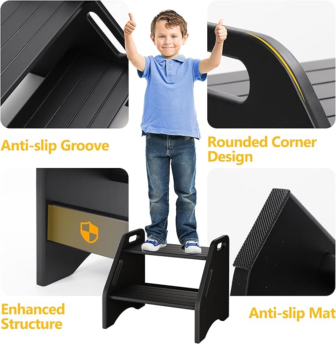 - HELPING KIDS WASH THEIR HANDS AND TOILET TRAINING: AMBIRD toddler step stool is suitable for the kitchen sink, bathroom toilet, bookshelf; It can help children wash their hands, brush their teeth, go to the toilet and take things; You can also use the toddler stool to go to the child for toilet training, to develop the child's independence and more helpful to the child's growth