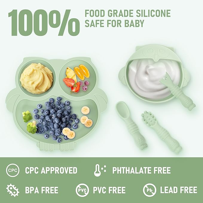 - Food Grade Safety Silicone Weaning Set: The baby weaning set is made of food grade silicone material, which is free of BPA, PVC, phthalates, and other harmful chemicals. The safe and healthy silicone feeding set not only provides convenience for the baby to train for self feeding, but also the soft and safe silicone material will not affect the baby's growing teeth. It is the most ideal choice for baby weaning.