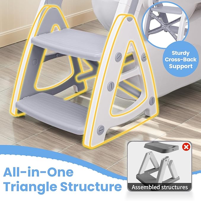 Primlect Potty Training Seat, 2-in-1 Toddler Toilet Seat with Step Stool, Ultra-Stable Potty Chair Attachment, Adjustable Seat and Step Ladder, Non-Slip Design, Splash Guard for Boys and Girls(Grey)