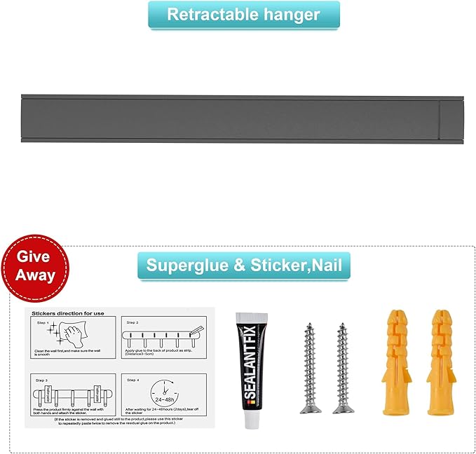 - 【2 Installation Methods】. We provide 2 installation methods. For some installation positions that are not suitable for nails, laundry drying rack can be used with the post and the super glue we provide. For some places where nails can be used, consider using it together with glue to fix it, laundry rack will be more stable.Clothes drying rack for laundry.drying rack clothes foldable, retractable clothesline