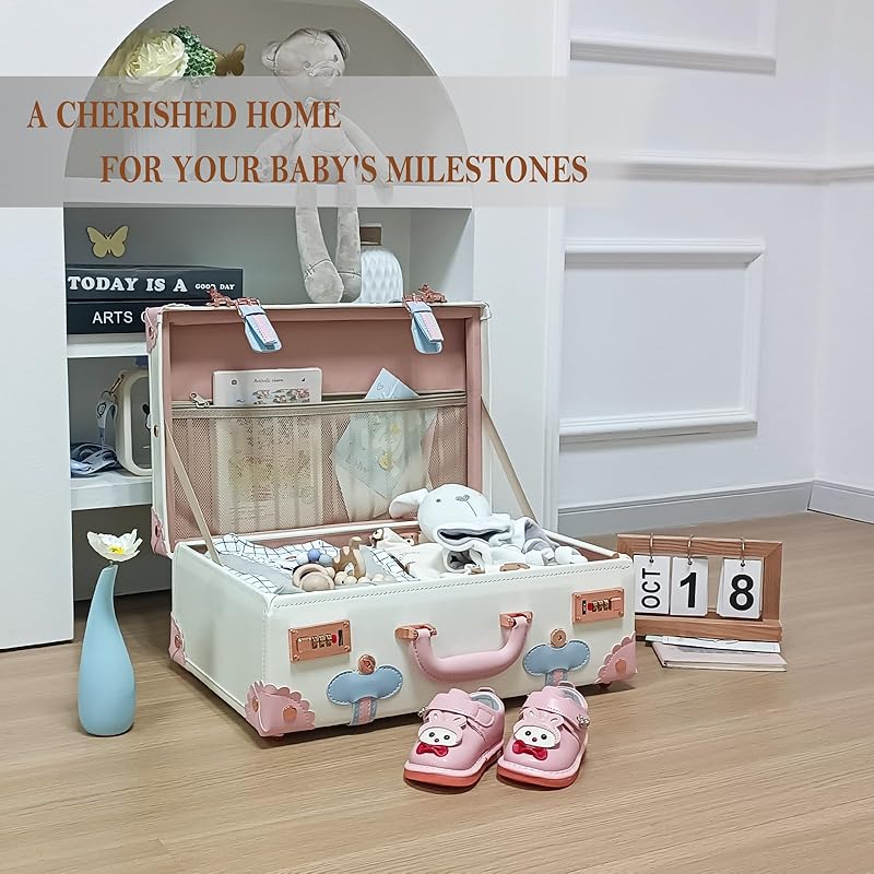 - Vintage-style Appearance: The vintage design enhances the presentation of your baby's keepsakes. It elevates the overall aesthetic of the keepsake case and adds to the enjoyment of revisiting those precious memories