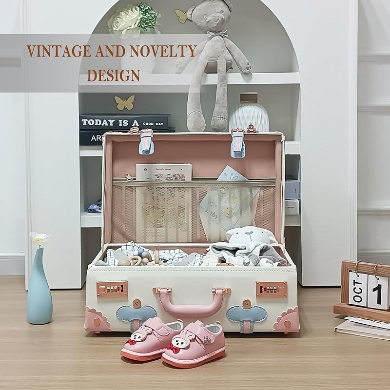 Unitravel Baby Keepsake Case, Handmade Memory Storage Box, Newborn Keepsake Box, Vintage Suitcase for Baby Shower, Baptism, Naming Ceremony or Birthday (cream white, 18")