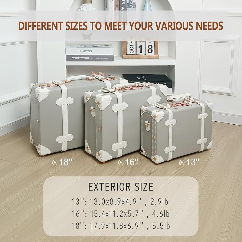Unitravel Baby Keepsake Case, 18" Handmade Memory Storage Box, Newborn Keepsake Box, Vintage Suitcase for Baby Shower, Baptism, Naming Ceremony or Birthday (grey)