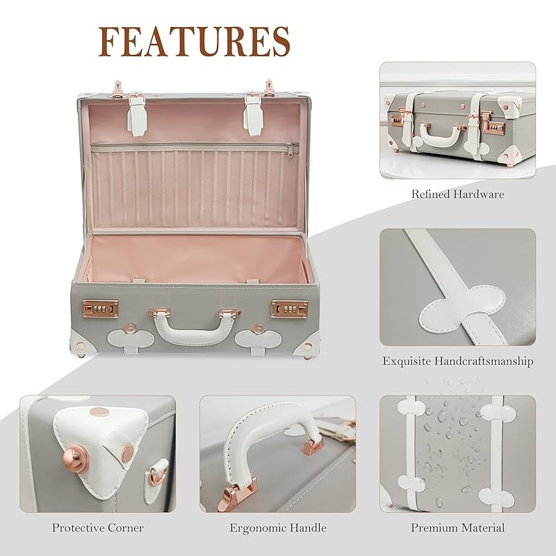 - Quality Material: Fully lined interior in soft fabric; strong dense stitched exterior in realistic faux leather. The rose gold latches and finishes offer a modern luxurious detail
