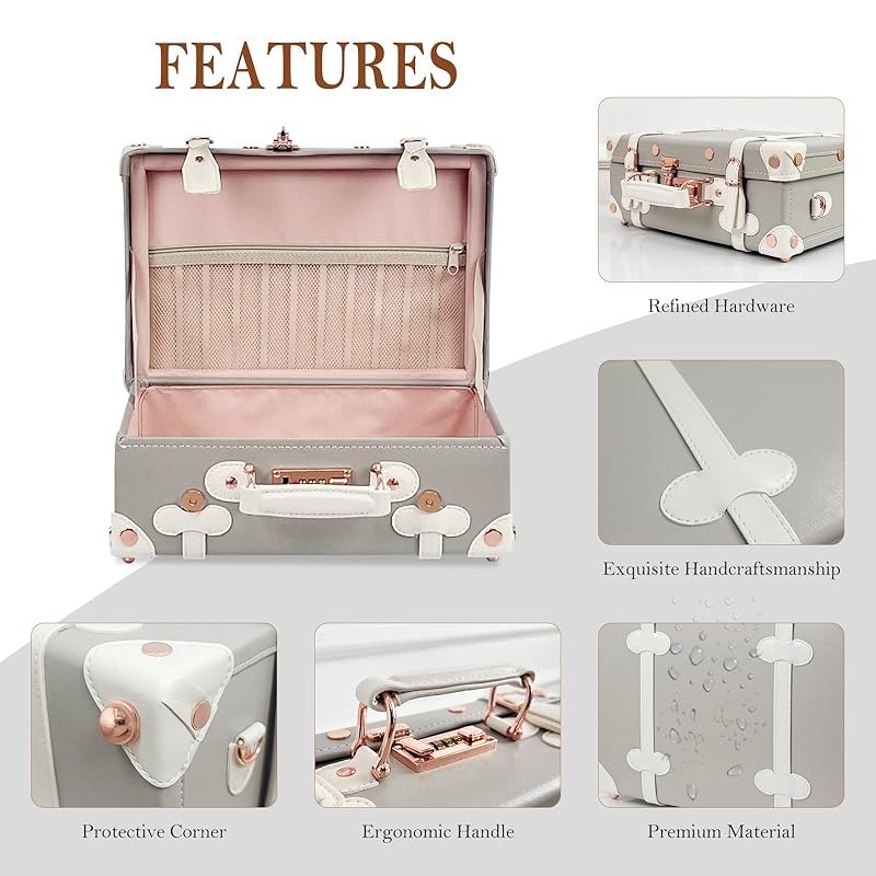 - Quality Material: Fully lined interior in soft fabric; strong dense stitched exterior in realistic faux leather. The rose gold latches and finishes offer a modern luxurious detail