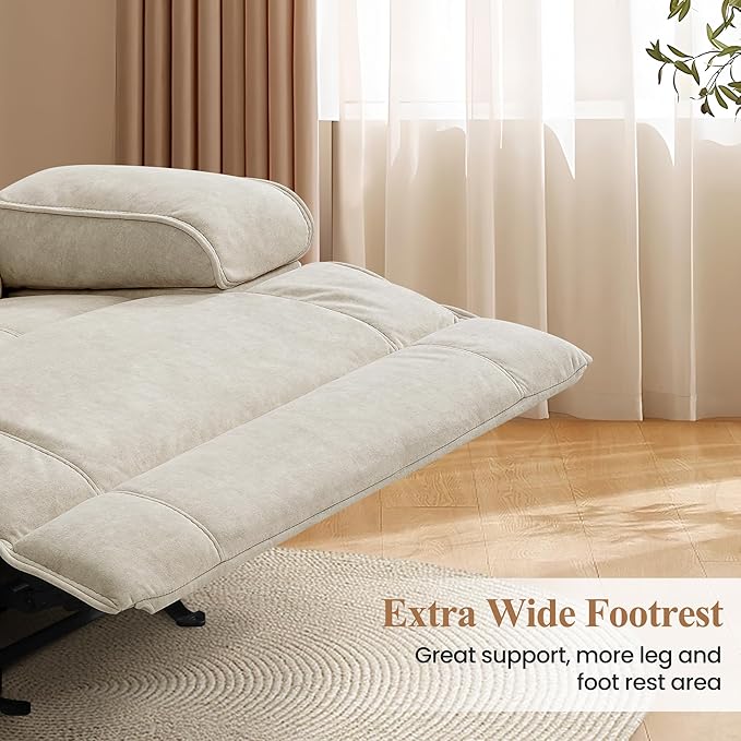 - 【Extra-Wide Footrest】 Our nursery rocking chair features an expanded footrest matching the armrest width (35.5"), providing ample space for total relaxation during nursing or rest. You can even cross your legs comfortably while reclining.