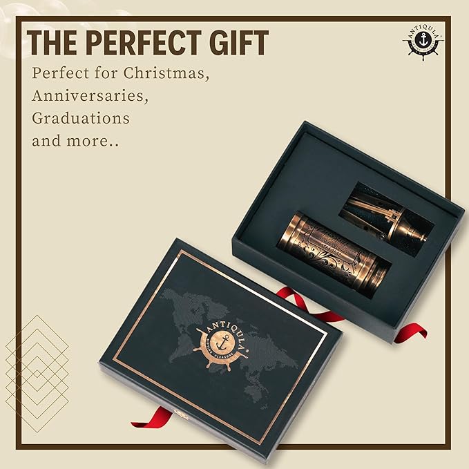 Vintage Brass Decor Telescope on Tripod, Antique Pirate Spyglass with Gift Box, Monocular Nautical Handheld Telescope Ideal for Home Decor, Gifting, Traveling, Kids, Bookshelf & Office Desk