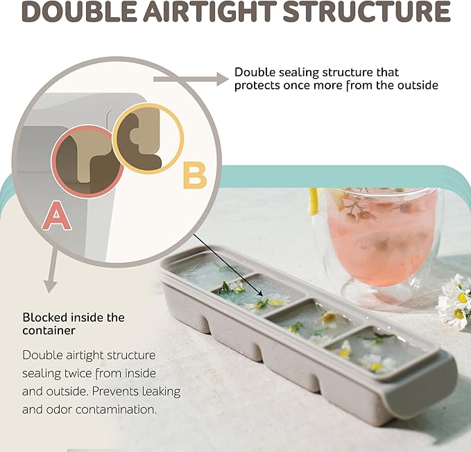 - ✅Double Airtight Sealed - With airtight double sealing, they are completely sealed, so you can make fresh baby food or ice without worrying about the smell of the refrigerator permeating the cubes as they are tightly sealed. Holds the inside and outside of the container tightly together to prevent the ingredients from mixing.