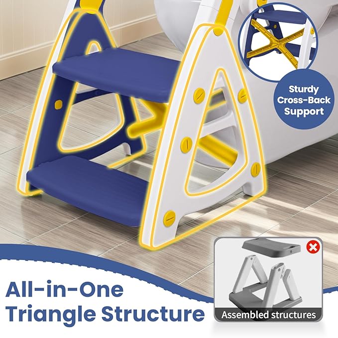 Primlect Potty Training Seat, 2-in-1 Toddler Toilet Seat with Step Stool, Ultra-Stable Potty Chair Attachment, Adjustable Seat and Step Ladder, Non-Slip Design, Splash Guard for Boys and Girls(Blue)