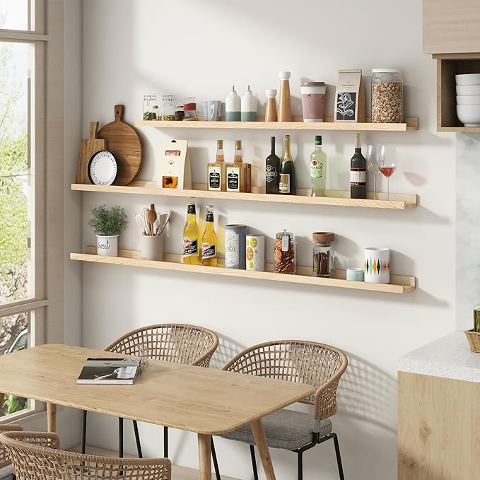Picture Ledge Shelf for Wall, 36 inch Solid Pine Wood Nursery Book Shelves 2 Packs, Floating Ledge Shelves for Kids' Room Bedroom Bathroom Living Room Photo Frames Office Nursey Wall Decor, Natural