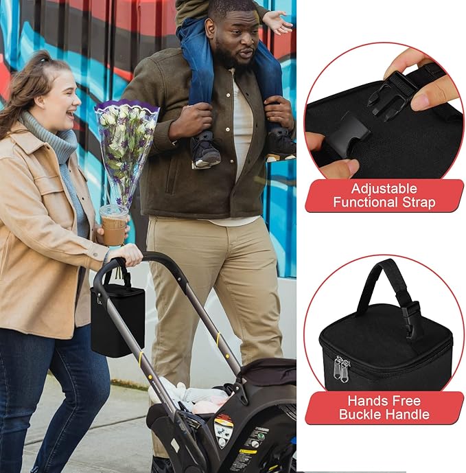 - PORTABLE WITH DETACHABLE BUCKLE: The detachable buckle design of the reusable baby bottle bag ensures you two portable carry ways, handhold or hanging on a stroller, together with soft nylon handle, let you carry the bottle bag effortlessly and comfortably.