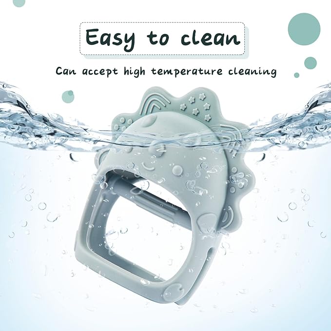 - EASY TO HOLD TIGHT: There is a stem inside the hollow animal-shaped teethers for babies 3-6 months to grasp easily. There are ears on the top, when baby hold it, he or she can easily locate the ears into the mouth. Silicone helps relieve teething discomfort while baby sucking the nipple part.
