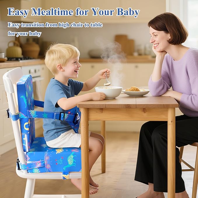 - [Safe to Eat]Say Goodbye to a traditional booster seat and regular highchair. Compared with other old models on the market, our booster seat has added backrests and 3-point harness strap. It prevents your little one from falling out of the chair and avoids accidents, seat belts A piece of fabric on the front also protects the kid's skin