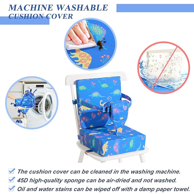 - [Easy to clean] Our toddler booster seat for table is made of high-quality waterproof fabric, which is easy to clean, so if food spills, you can use a wet towel to wipe it clean. In addition, the toddler booster seat for table has a leather zipper design, which is detachable and won't hurt hands