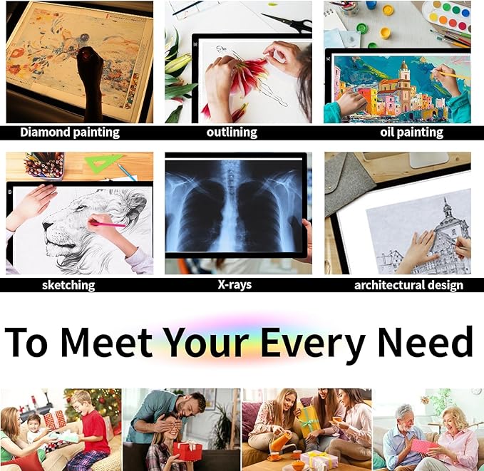 - Larger Working Area: The A2 tracing light box offers a spacious workspace with 24* 15 in. It comes with a versatile clamp that can securely hold diamond art canvases measuring 24* 15 in or even larger.