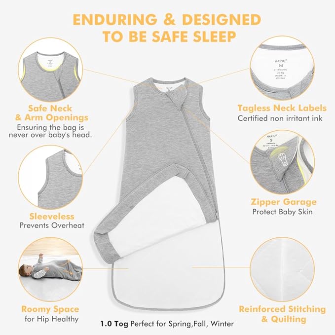 - [Roomy & Longer Wear]: Extra Leg Room / Length for kicking (hip healthy) and room to grow, but cannot be kicked off. 1.0 TOG rating for the perfect all-season. Reinforced Stitching & Quilting for durability.
