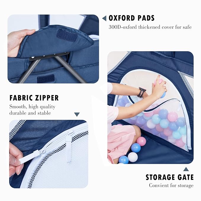 - ❤Easy to Set Up: Assembles and stows in minutes, no tools required. Playpen Includes 50 ocean balls and 2 handles for even more fun!