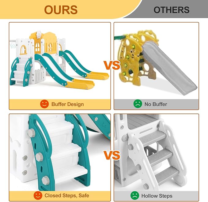 - 【Deluxe Double Slide】 The double slide design encourages children to slide together, they raced down the slide and compete for the champion. Kids can enjoy the fun of competition, cultivate friendships, and promote social interaction and sense of cooperation.