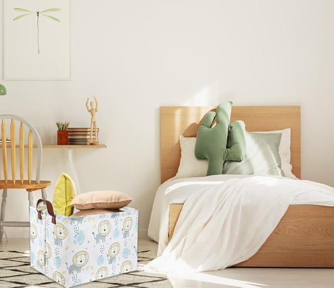 HIYAGON Baby Storage Baskets kids Toy Basket for Boy and Girls Gift Basket Empty Cute Storage Bin Organizer Box Rectangular Animal Room Decor for Books(Lion)