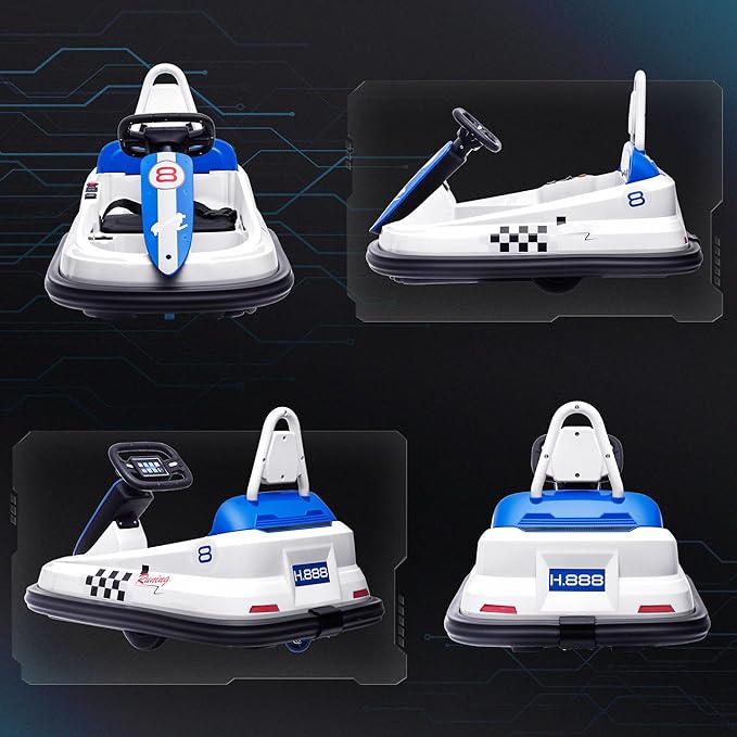 - Safety First: Equipped with EVA bumper edges, our kid bumper car ensures maximum safety for your little ones during fun-filled rides. In addition to the seatbelt, the back handle allows you to grab the car in case you need to take control.