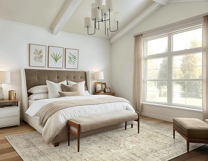 LIVEBOX Washable Area Rug 6x9 Rugs for Living Room Dining Room Under Table, Non-Slip Boho Neutral Carpet for Bedroom, Low-Pile Farmhouse Soft Carpets for Nursery Room Playroom, Tan