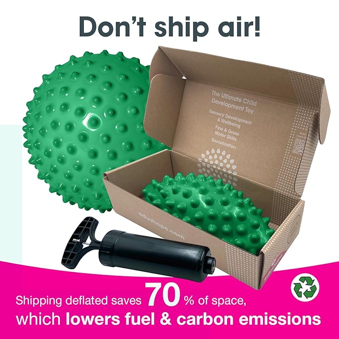 - WHAT'S INSIDE: A set includes one 7" Green-Opaque Deflated with Pump sensory ball for toddlers 1-3. Our baby development balls come deflated but can be easily inflated via a built-in valve. Recommended for kids aged 6 months and up!