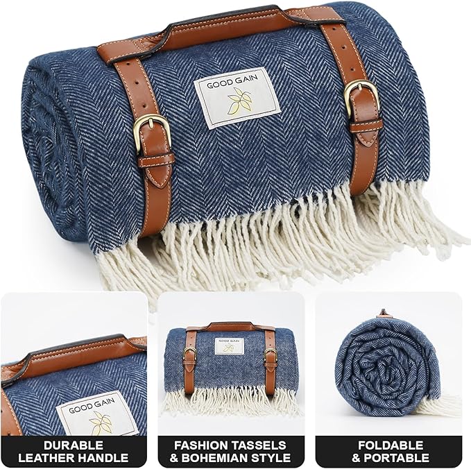 - PRACTICAL 2 in 1 Design- Our picnic mat is the perfect solution for picnics throughout the year. Our unique two-in-one design allows our Boho camping blanket to serve multiple purposes.Complete with a 100% acrylic body and PU leather handle, style, beauty, and practicality are seamlessly combined. We use tassels and unique herringbone lines as decoration to make the large picnic blanket extra special with multiple elements.the black bottom layer serves as a waterproof mat, providing protection against moisture and dirt for a comfortable outdoor experience. Additionally, it serves as a fantastic backdrop for photos.