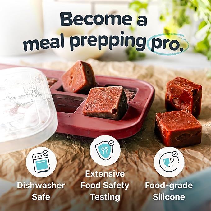 - MEAL PREP: Spend less time thinking about what you're going to eat and more time enjoying it. Our silicone freezer trays with lids are designed to make meal prep a breeze. They are made from 100% pure platinum food-grade silicone with a steel-reinforced top and a convenient lid.