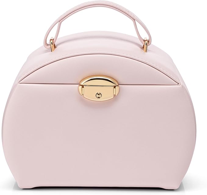Vlando Musical Jewelry Box with Spinning Ballerina, Lockable Girls’ Jewelry Organizer for Necklaces Rings and Hair Accessories, Gift for Girls and Kids, Barely Pink