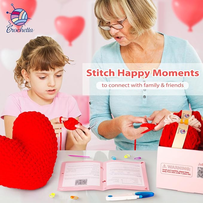 Crochetta Crochet Kit for Beginners, Crochet Kit w Step-by-Step Video Tutorials, Crochet Starter Kit Learn to Crochet Kits for Adults Kids Beginners, Heart Crochet Kit